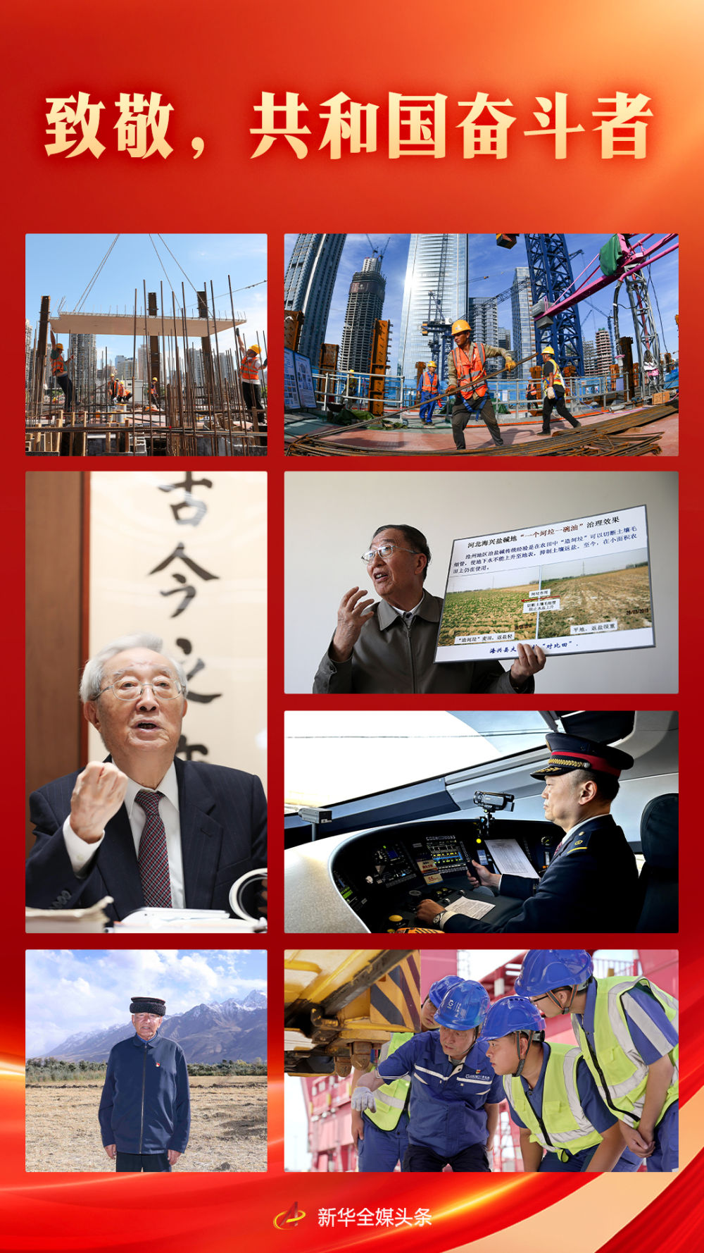田間地頭、工廠車間、科研一線,在黨的領(lǐng)導(dǎo)下,共和國的奮斗者們勠力同心、開拓進取。他們的身影,定格成最美麗的風(fēng)景,匯聚起全面建設(shè)社會主義現(xiàn)代化國家新征程上的磅礴力量?! ?/p>