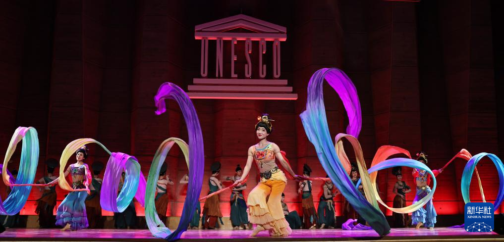 9月24日,在位于法國巴黎的聯(lián)合國教科文組織總部,中國殘疾人藝術(shù)團(tuán)的演員在國慶75周年招待會(huì)上表演。新華社記者 高靜 攝