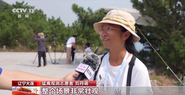 猛禽觀測(cè)志愿者 劉丹萌:“萬猛日”當(dāng)天真的心情非常激動(dòng),整個(gè)場(chǎng)景非常壯觀,可以看到無數(shù)的小黑點(diǎn)從這個(gè)山頭開始冒起,像一條河一樣非常長(zhǎng),一直連到對(duì)面的山東煙臺(tái),這一整片天空全部都被猛禽占滿了,實(shí)在是太震撼、太壯觀了。