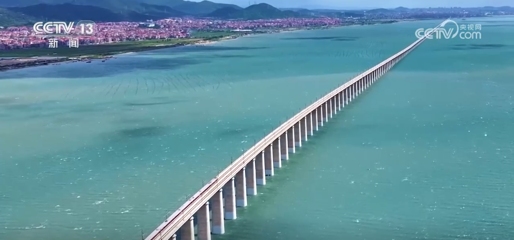 這是我國首條設(shè)計(jì)時(shí)速350公里的跨海高鐵——福廈高鐵湄洲灣跨海大橋。碧波之上,大橋氣勢恢宏,連接兩岸。在跨海大橋上行車,受海上風(fēng)力影響很大,通過這樣的路段通常需要減速慢行。但福廈高鐵實(shí)現(xiàn)了“跨海過橋不減速”,在不設(shè)風(fēng)屏障等防風(fēng)措施下,列車可在8級(jí)大風(fēng)下以時(shí)速350公里速度行駛。國慶假期,福廈高鐵加開195趟列車,滿足旅客出行需求。