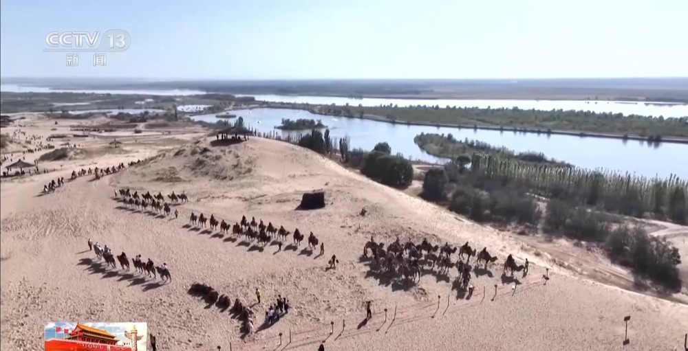 總臺記者 朱達:寧夏銀川市黃沙古渡景區(qū)以一處千年古渡命名,匯集了黃河、沙漠、湖泊、濕地和田園等多種自然風(fēng)光。十一期間全國各地的游客來到黃沙古渡, 一方面可以欣賞大漠風(fēng)光、感受黃河文化 ,另一方面可以體驗騎駱駝、沙漠沖浪和飛索等多種項目。