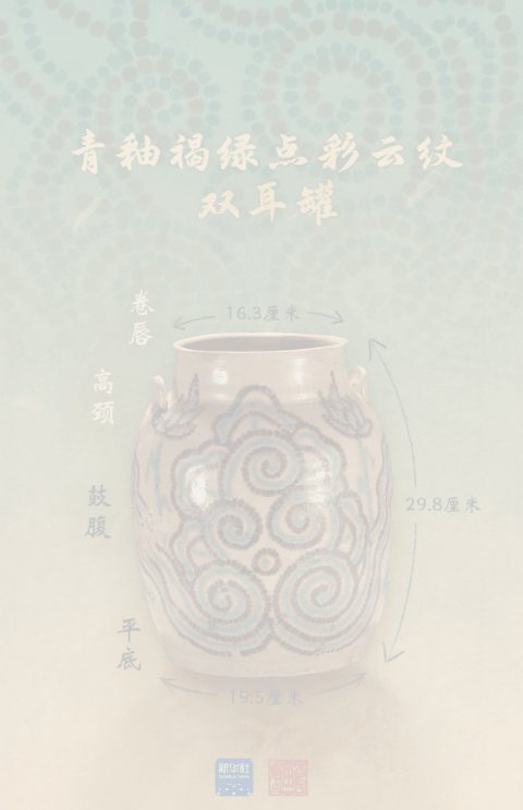 青釉褐綠點(diǎn)彩云紋雙耳罐