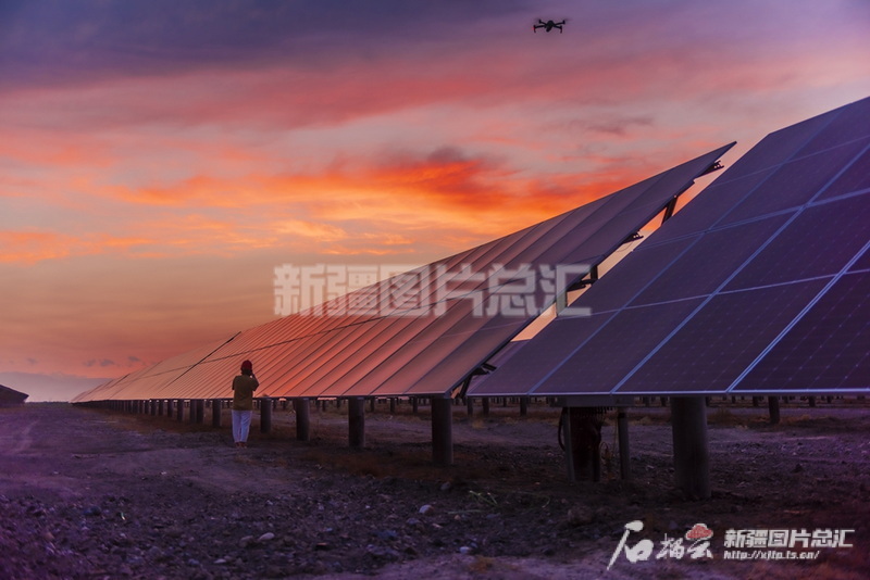 2024年8月20日,新疆生產(chǎn)建設(shè)兵團(tuán)第七師124團(tuán)10萬千瓦光伏發(fā)電項(xiàng)目建設(shè)現(xiàn)場(chǎng),工人在檢查光伏板。田國(guó)建攝