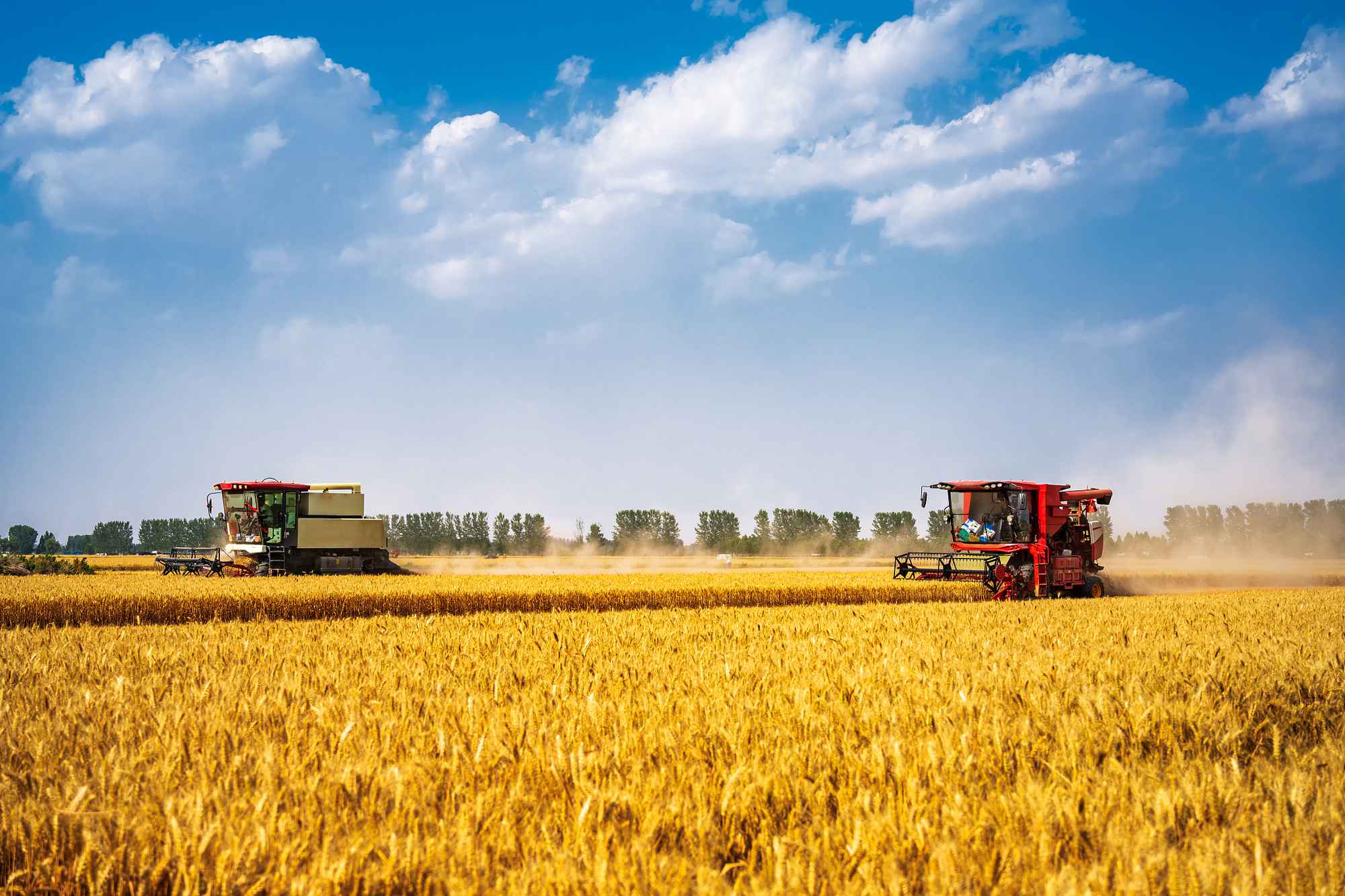 河南省鄭州市聯(lián)合收割機(jī)收割麥田場景