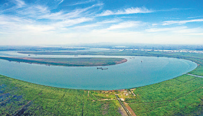 長(zhǎng)江湖南岳陽(yáng)君山區(qū)段景色壯美。當(dāng)?shù)亟y(tǒng)籌山水林田湖草沙綜合治理,扎實(shí)推進(jìn)長(zhǎng)江經(jīng)濟(jì)帶綠色發(fā)展示范區(qū)建設(shè)。李 健攝(人民視覺(jué))