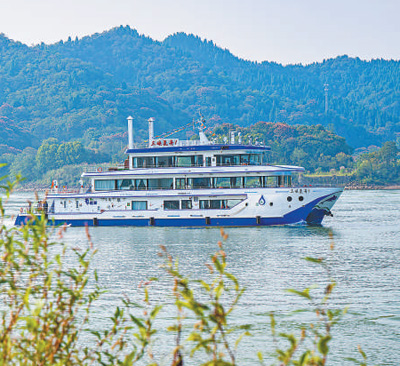 長(zhǎng)江上的第一艘氫燃料電池動(dòng)力船“三峽氫舟1”號(hào)在航行。據(jù)測(cè)算,“三峽氫舟1”號(hào)相比傳統(tǒng)燃油動(dòng)力船舶,每年可減少二氧化碳排放343.67噸。新華社記者 肖藝九攝
