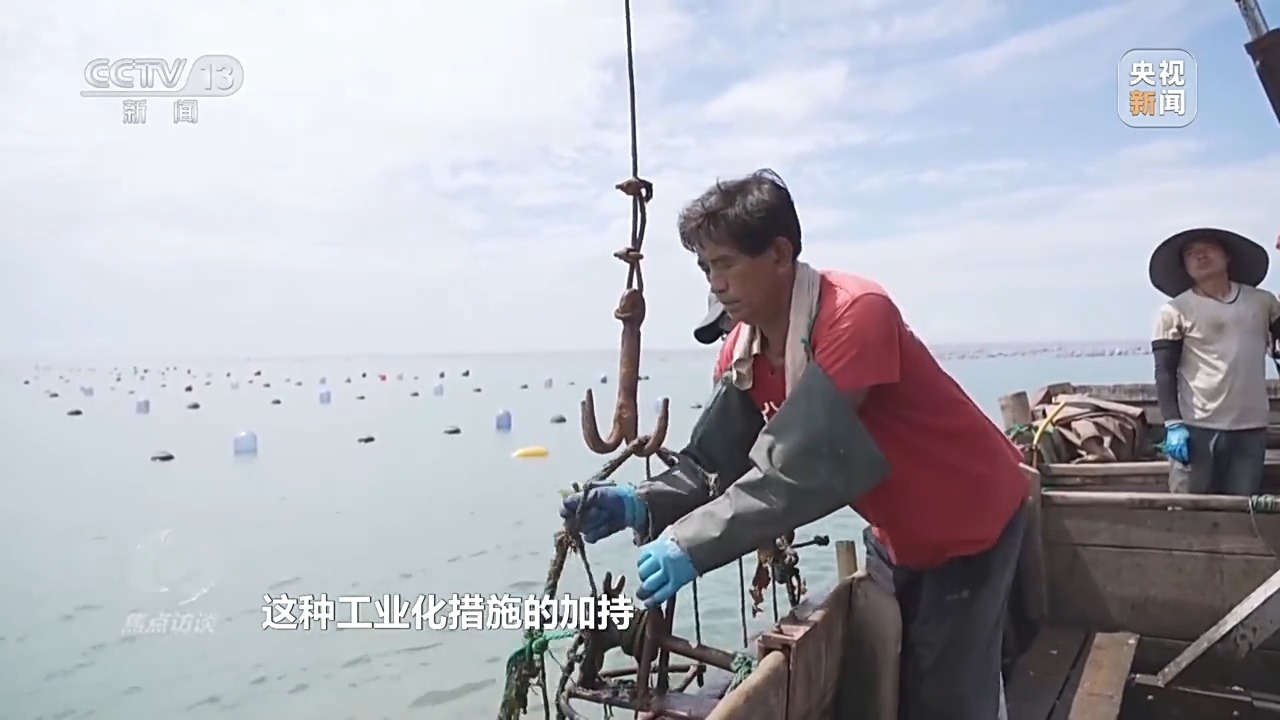 中國科學院海洋研究所研究員 張國范:“比如容量的控制,包括溯源技術、凈化等工業(yè)化措施的加持。我們過去主要在黃海渤海進行養(yǎng)殖,現在擴展到福建東海以及廣東、廣西、海南南海,每年養(yǎng)殖面積達到100萬畝,產量100萬噸,產值100個億。”