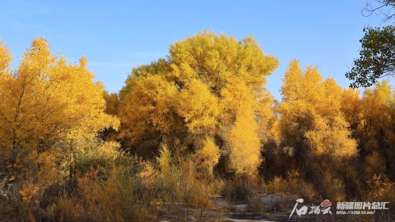 金秋十月,新疆各地胡楊林逐漸金黃一片,在藍(lán)天的映襯下,呈現(xiàn)出油畫般濃烈的色彩?!氨淘铺?,黃葉地,秋色連波”的秋日限定視覺盛宴已開啟,各地紛紛推出豐富多樣的活動(dòng),胡楊樹下的音樂會(huì)、胡楊林間的騎行、徒步比賽、美食活動(dòng)、農(nóng)民畫展、服裝秀……吸引疆內(nèi)外游客共赴胡楊之約。
