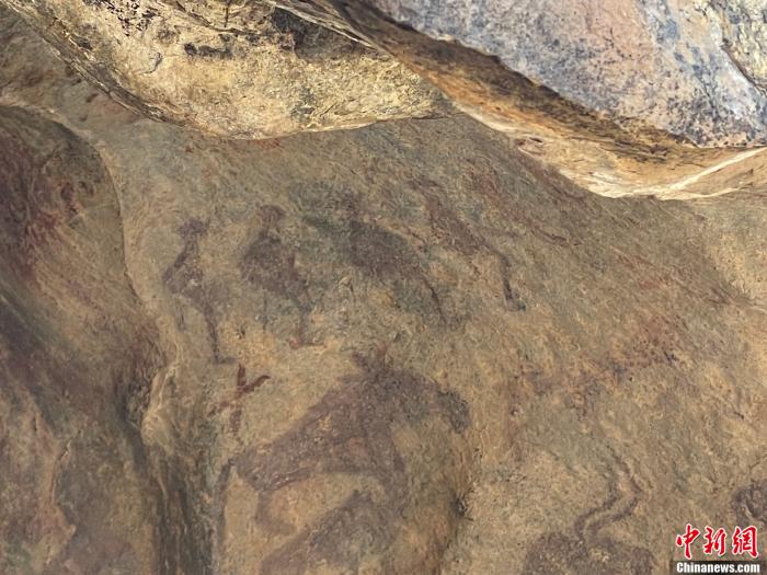 富含鐵礦石和動(dòng)物膠質(zhì)的顏料將這一幕拓印在避風(fēng)的巨石上,距離胡安什別克家40多公里的汗德尕特蒙古族鄉(xiāng)敦德布拉克河谷,走一段路,就能相遇這幅萬年前的人類滑雪活動(dòng)的“活化石”。