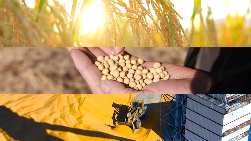 廣東乳源寬闊稻田迎豐收;黑龍江黑河田野上大豆搖鈴、機器轟鳴,秋糧收購全面開秤。