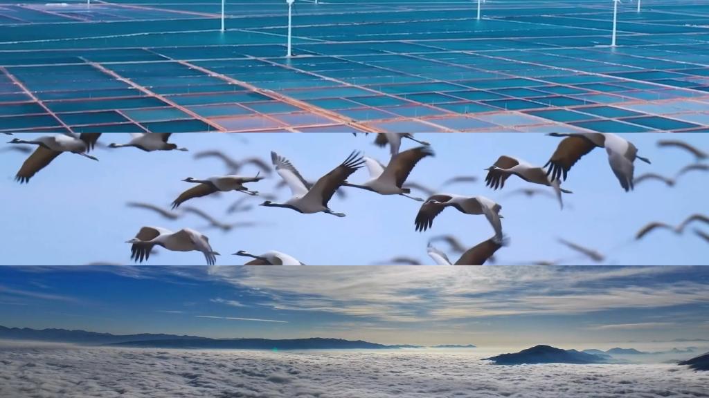 云南永善千畝梯田,一派豐收景象;貴州銅仁,秋日云海景觀浩瀚縹緲;新疆額爾齊斯河流域,成群候鳥飛翔在湖光秋色之中。