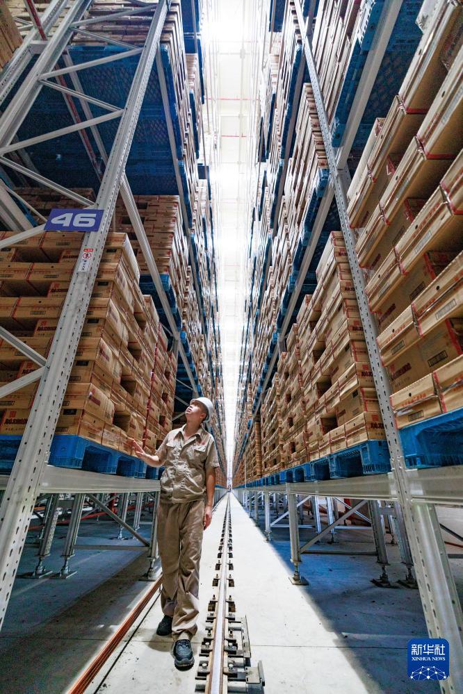 工作人員在老干媽倉庫內查看存儲的貨物(8月20日攝)。新華社記者 劉續(xù) 攝