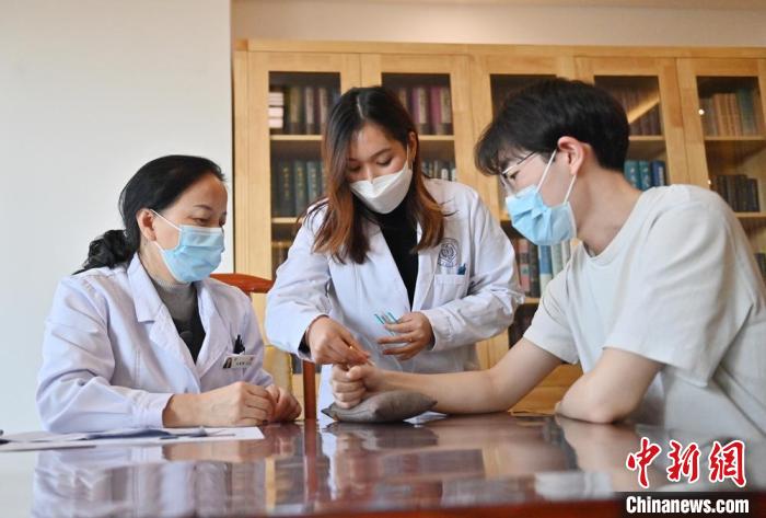 診室里,林玉花拿出針灸針,運(yùn)用捻轉(zhuǎn)與提插等手法為患者針灸治病。經(jīng)過老師悉心指導(dǎo),這位“95后”泰國女孩已經(jīng)熟練掌握針灸、拔罐等中醫(yī)治療手段。