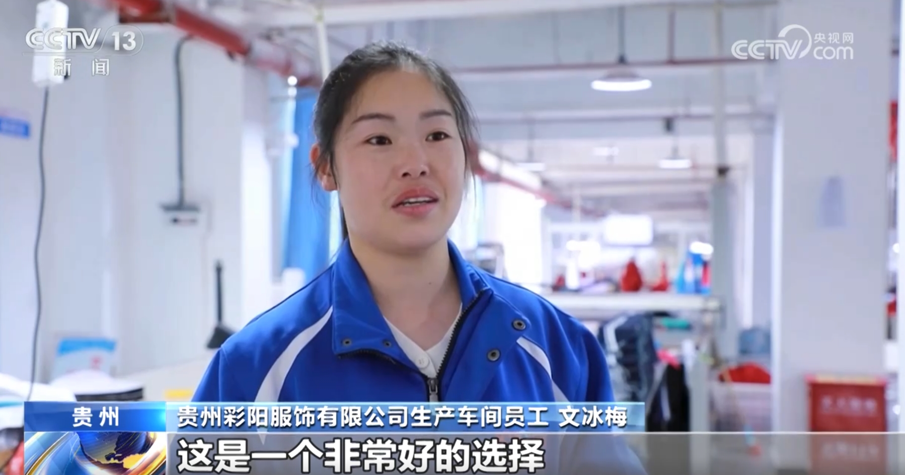 貴州彩陽服飾有限公司生產(chǎn)車間員工文冰梅稱:“平均工資四五千元,十幾年都在外面打工,回到家還有一份穩(wěn)定的收入,對于我們長期在外面打工的人來說,這是一個非常好的選擇。”