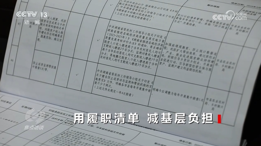 央視網(wǎng)消息(焦點訪談):“上面千條線,底下一根針”,人們經(jīng)常用這句話來描述鄉(xiāng)鎮(zhèn)干部的基層工作狀況。也有人用“小馬拉大車”形象地描述基層干部在實際工作中所面臨的滿負荷狀態(tài)。為了減輕基層負擔,2024年8月,中共中央辦公廳、國務(wù)院辦公廳印發(fā)《整治形式主義為基層減負若干規(guī)定》,其中明確提出,要規(guī)范明晰基層權(quán)責(zé),建立健全職責(zé)清單。那么,目前基層權(quán)責(zé)明晰做得如何呢?