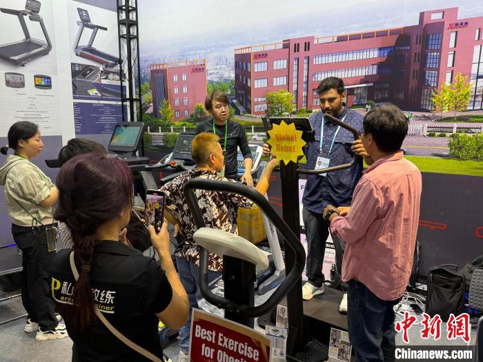11月2日,廣交會(huì)境外采購商在體驗(yàn)新款體育類產(chǎn)品。記者 蔡敏婕 攝