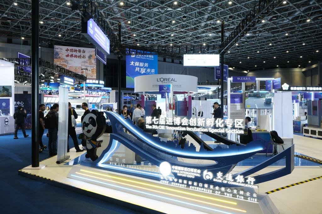 這是11月5日拍攝的第七屆進博會創(chuàng)新孵化專區(qū)現(xiàn)場。新華社發(fā)(周心怡攝)