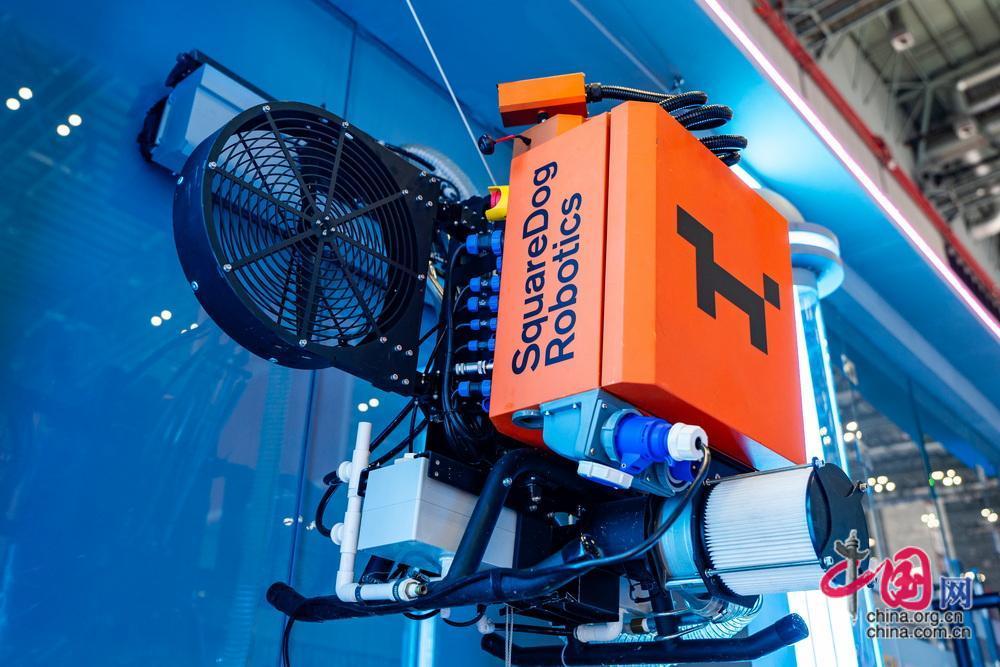 進(jìn)博會人工智能專區(qū)展示的外墻清潔機(jī)器人。中國網(wǎng)記者