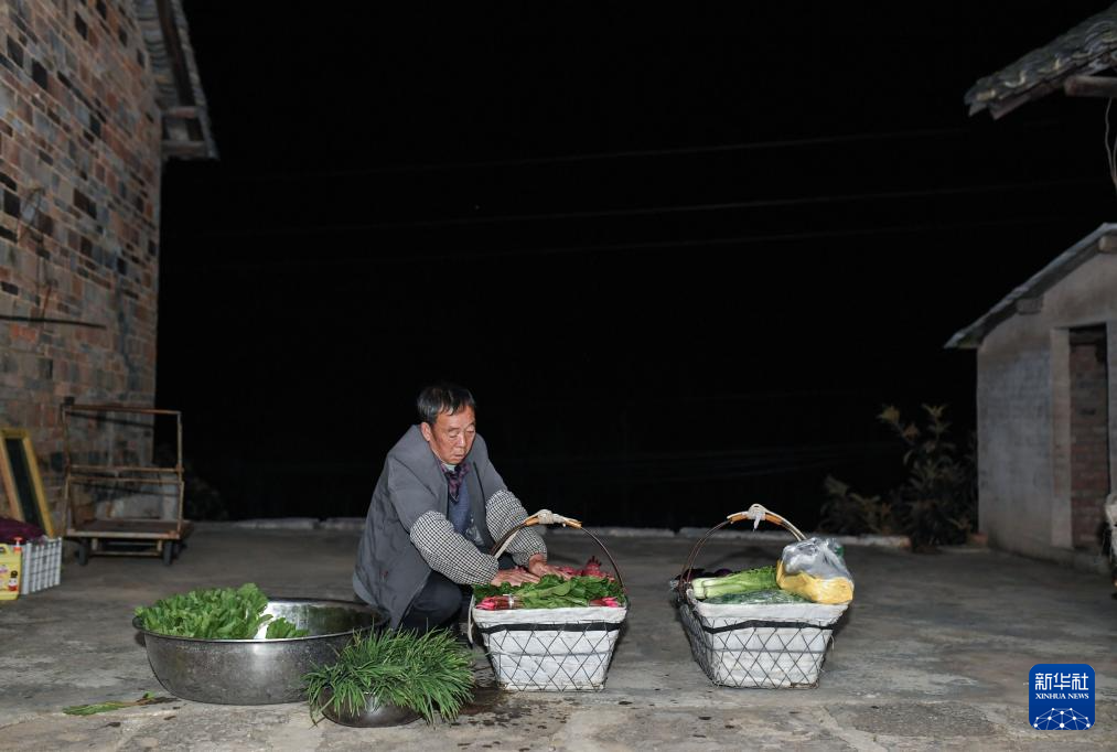 貴陽市烏當(dāng)區(qū)水田鎮(zhèn)定扒村的菜農(nóng)在整理蔬菜,準(zhǔn)備乘坐252路“惠農(nóng)專線”公交車進(jìn)城賣菜(11月7日攝)。