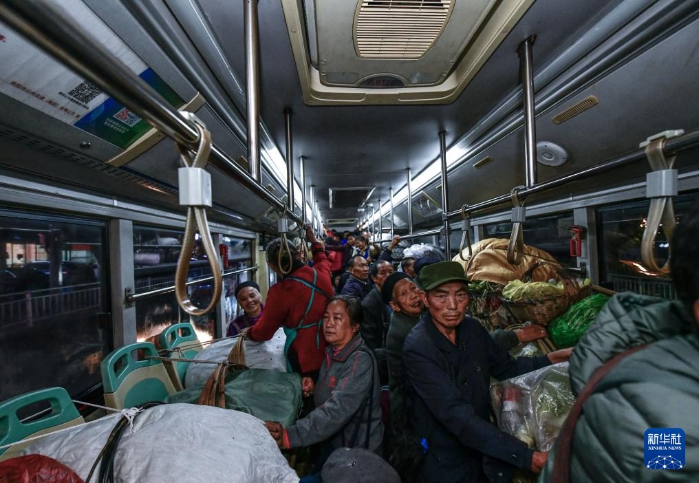 在貴陽市烏當(dāng)區(qū)水田鎮(zhèn)定扒村,菜農(nóng)乘坐252路“惠農(nóng)專線”公交車,準(zhǔn)備進(jìn)城賣菜(11月7日攝)。