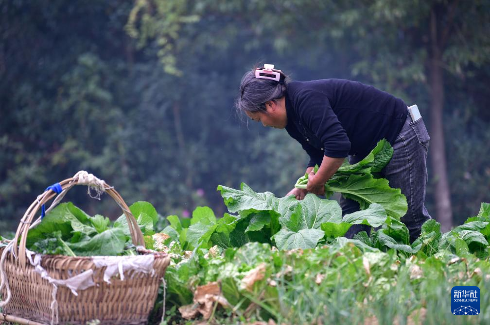 貴陽市烏當(dāng)區(qū)下壩鎮(zhèn)下壩村的村民在地里摘菜,準(zhǔn)備第二天進(jìn)城售賣(11月6日攝)。