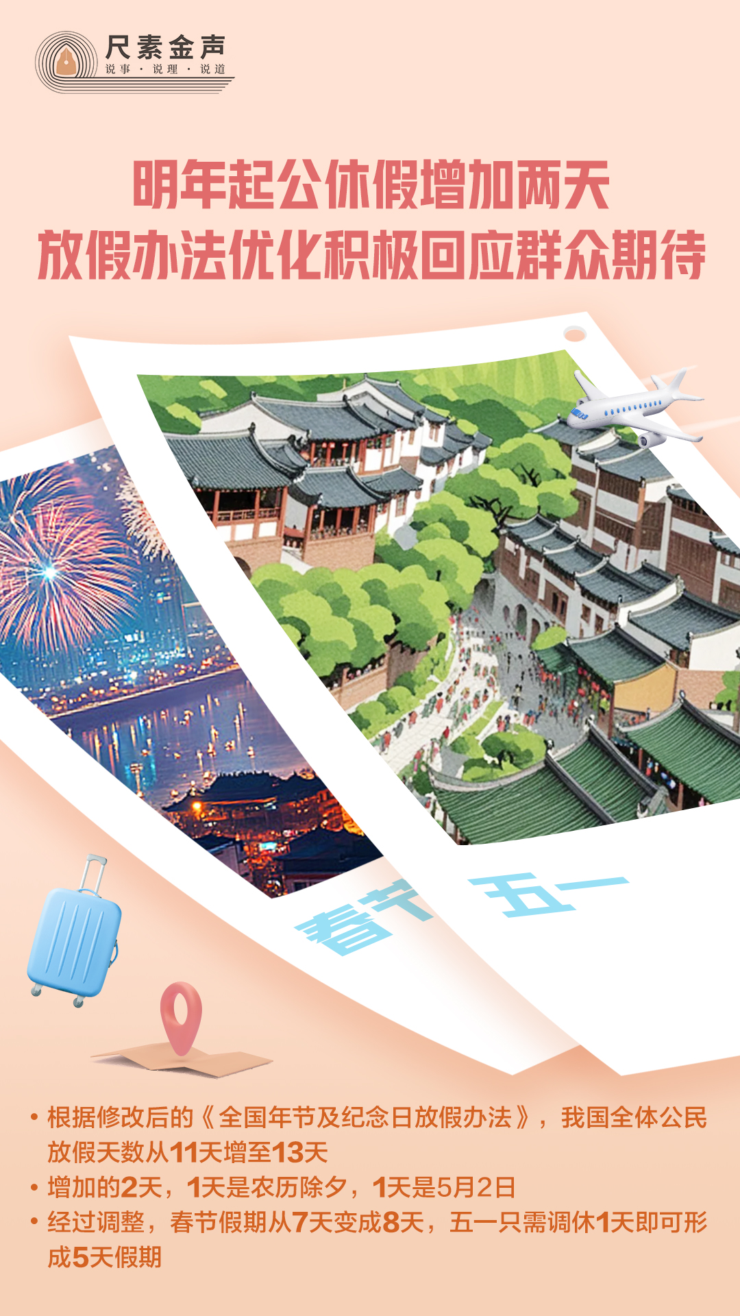 的決定》,并公布2025年部分節(jié)假日安排。“每年多放兩天假”“抓緊買好機票準備出游”……消息剛一發(fā)布,便受廣泛關(guān)注。" />