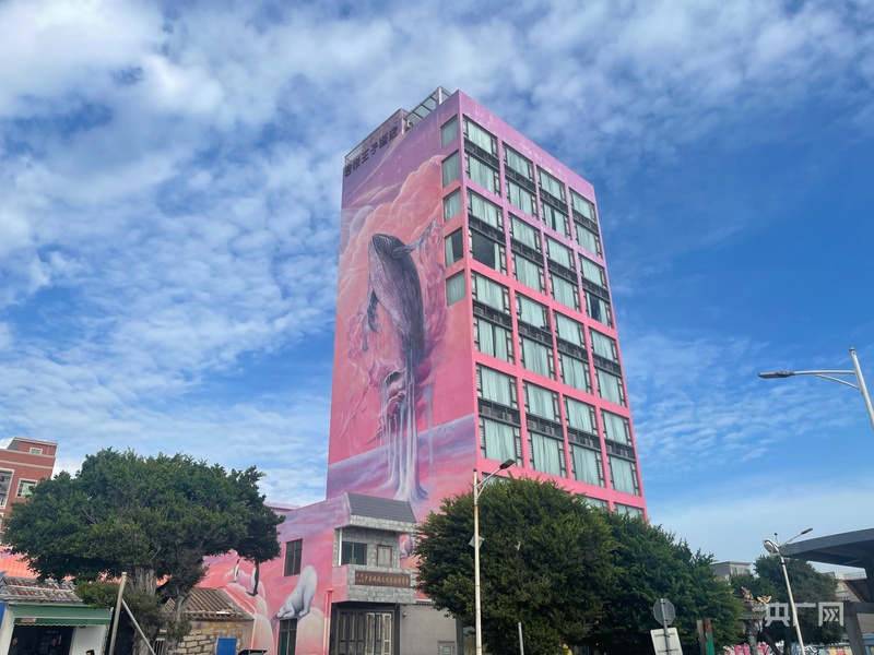 紅海灣開(kāi)發(fā)區(qū)遮浪街道水龜寮村海濱街建筑外立面的“夢(mèng)境鯨山”畫(huà)作(央廣網(wǎng)見(jiàn)習(xí)記者 張順鵬 攝)