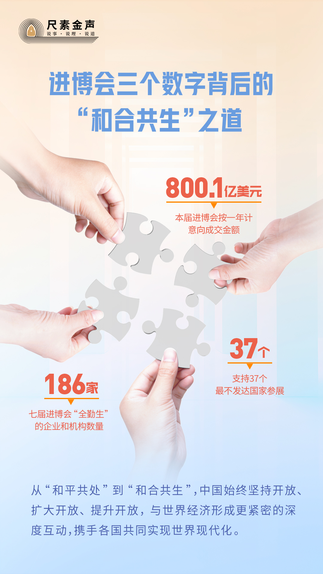 在進博會,這些數(shù)字生動說明,從“和平共處”到“和合共生”,中國始終堅持開放、擴大開放、提升開放,與世界經濟形成更緊密的深度互動,攜手各國共同實現(xiàn)世界現(xiàn)代化。