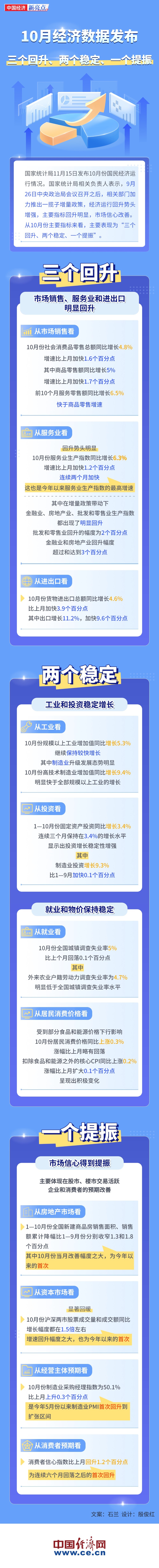 【圖解】10月經(jīng)濟數(shù)據(jù)發(fā)布:三個回升、兩個穩(wěn)定、一個提振