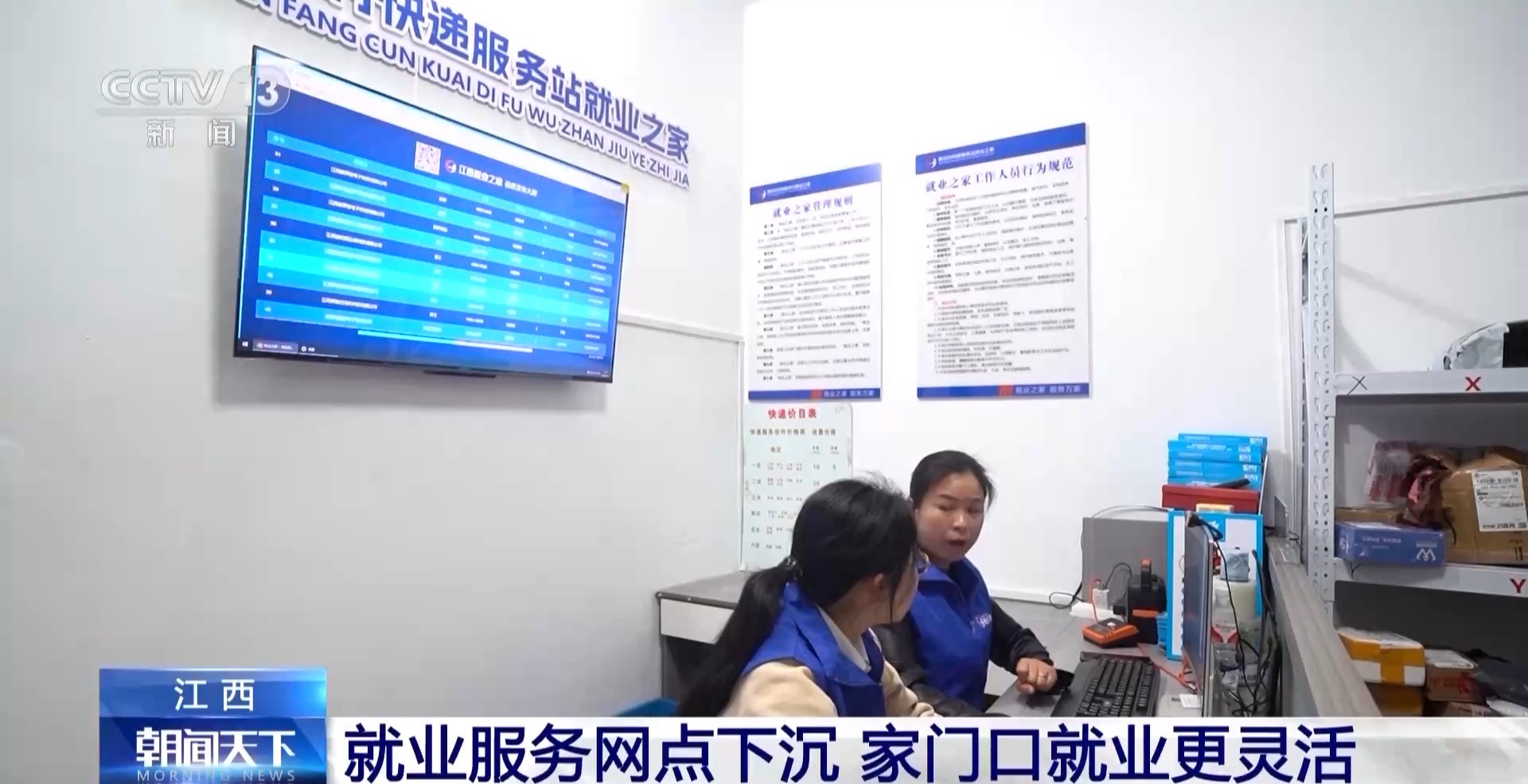 一大早,江西共青城甘露鎮(zhèn)的這個(gè)鄉(xiāng)村快遞站里就迎來不少村民。除了拿快遞、寄快遞以外,一些人是奔著招聘信息而來的。