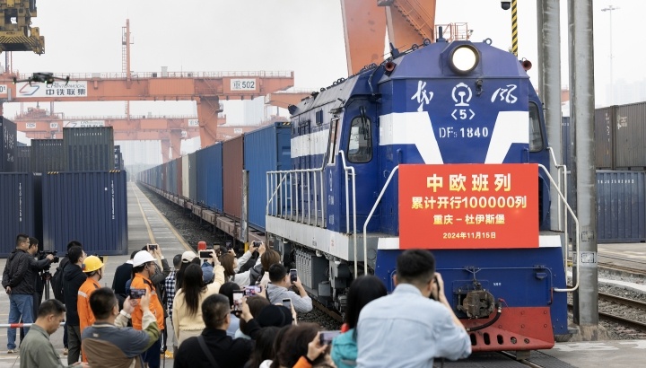 2024年11月15日10時20分,中歐班列第10萬班列車從重慶發(fā)出