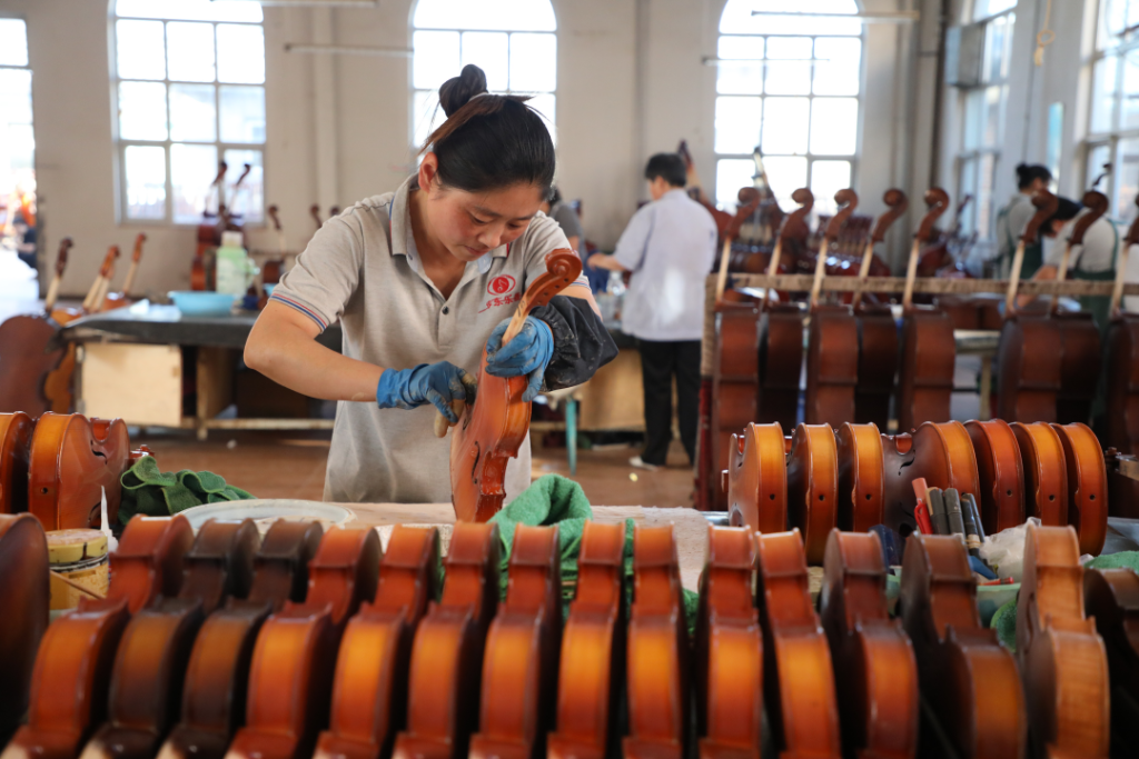 高峰時(shí)節(jié),東高村鎮(zhèn)每年生產(chǎn)的提琴達(dá)30萬(wàn)支,約占全球銷(xiāo)量的三分之一,銷(xiāo)往全球40多個(gè)國(guó)家和地區(qū),年產(chǎn)值超過(guò)7000萬(wàn)元。
