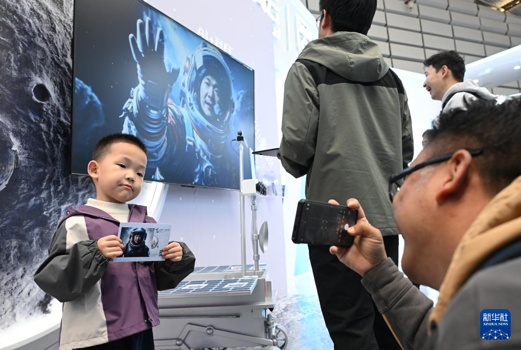11月19日,在2024年世界互聯(lián)網(wǎng)大會“互聯(lián)網(wǎng)之光”博覽會上,一名小觀眾參與AIGC互動體驗(yàn),并同AI系統(tǒng)生成的自己的虛擬照片合影。
