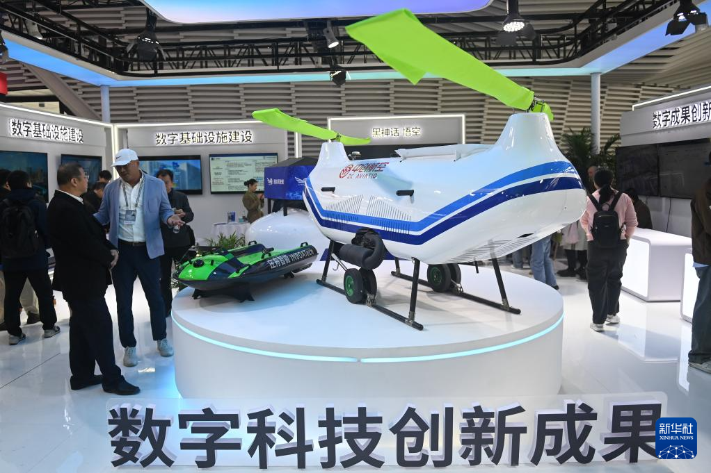 11月19日,在2024年世界互聯(lián)網(wǎng)大會“互聯(lián)網(wǎng)之光”博覽會上,觀眾觀摩一架無人駕駛電動航空器。