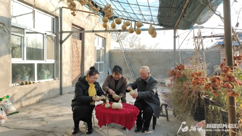 11月19日,焉耆回族自治縣永寧鎮(zhèn)下岔河村陽(yáng)光明媚。村民陳新萍忙完家務(wù),早早來(lái)到同村的帕提古麗·艾沙家,兩人開始一起摘葫蘆、裝筐、去皮,為趕制下一批烙畫葫蘆做準(zhǔn)備。