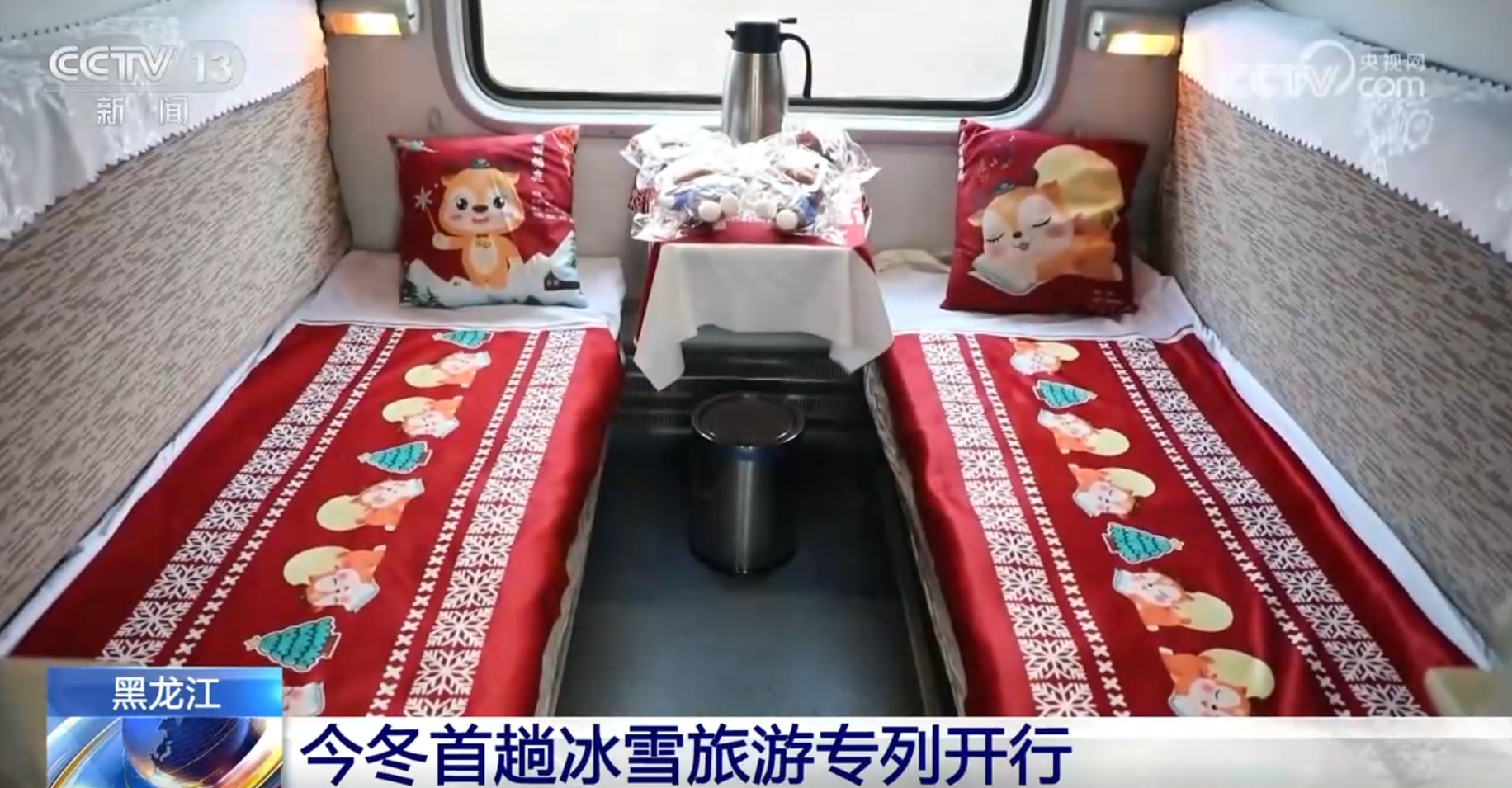 為了滿足各地游客的出行需求,沿途車站開辟了專用候車區(qū)域,安排專人引導出行,提高進出站效率。同時車廂臥具、抱枕裝飾了冰雪、民俗文化的主題元素,專列上還安排了列車管家,配備應急藥品。行李還可寄存在車上,游客游玩更輕松。
