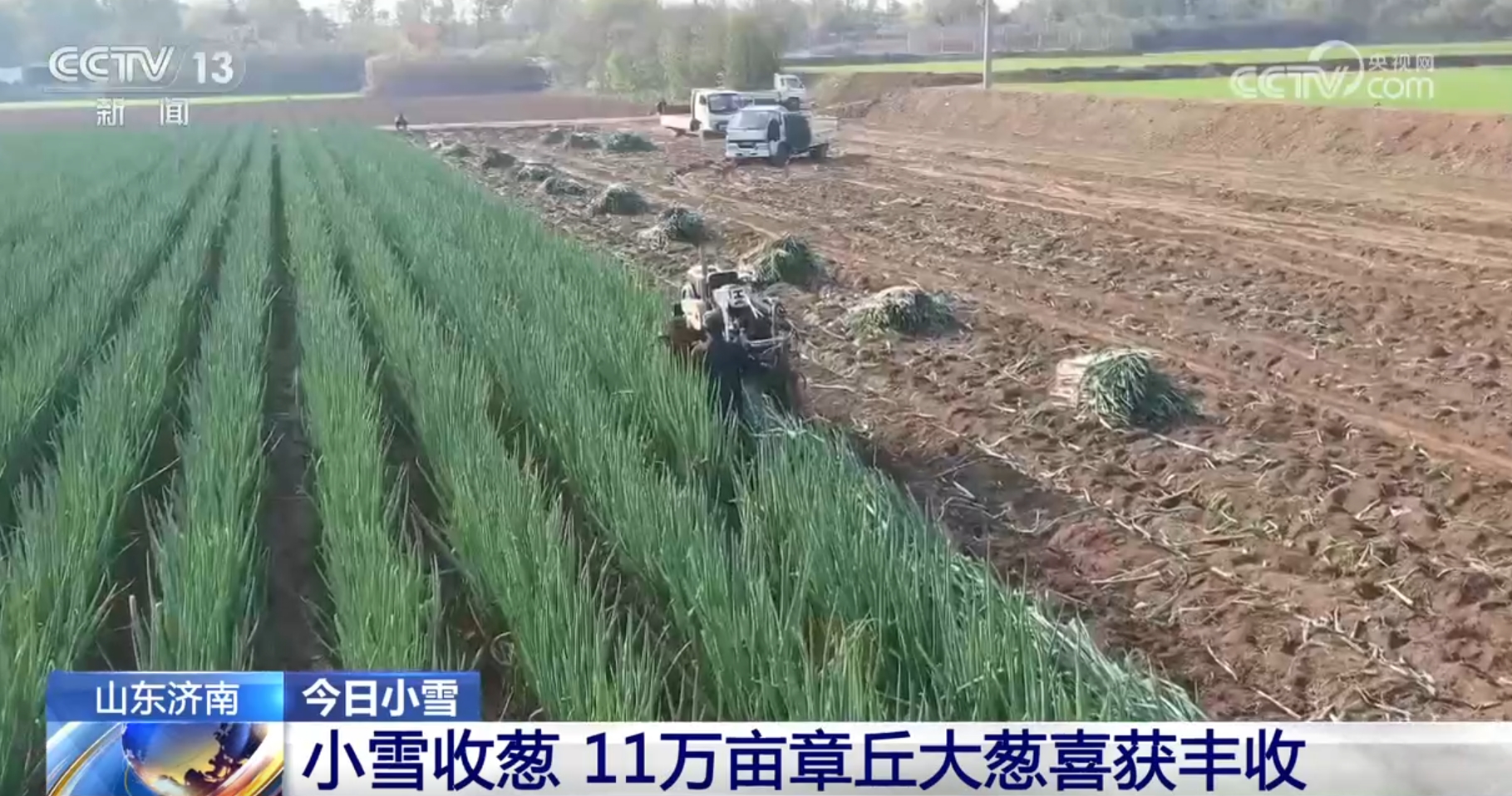 俗語(yǔ)說“小雪收蔥,不收就空”,小雪節(jié)氣是北方大蔥收獲的時(shí)候。在山東濟(jì)南,這里自古就有種植大蔥的傳統(tǒng),眼下11萬畝章丘大蔥喜獲豐收,村民們正忙著收蔥、賣蔥,種植基地里,大蔥收獲機(jī)的應(yīng)用大大提高了采收效率。