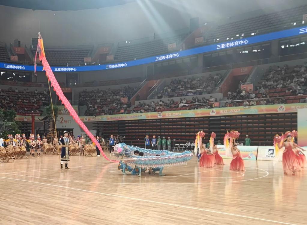 唐寶(左)手持巨龍,在本屆運(yùn)動會表演項(xiàng)目比賽中。受訪者供圖