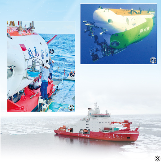 圖①:“奮斗者”號注水下潛。中國科學院深海科學與工程研究所供圖