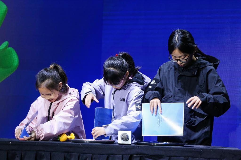 11月23日,小觀眾在浙江杭州舉辦的2024菠蘿科學(xué)獎(jiǎng)現(xiàn)場(chǎng)進(jìn)行科學(xué)實(shí)驗(yàn)。新華社發(fā)