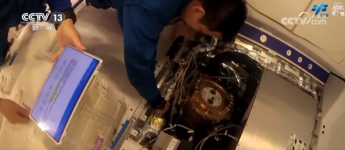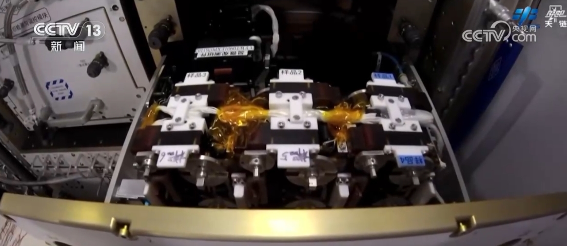 乘組還完成了流體物理實(shí)驗(yàn)柜固液介觀實(shí)驗(yàn)單元樣品盤檢查、實(shí)驗(yàn)樣品更換,無容器柜實(shí)驗(yàn)腔體樣品清理、實(shí)驗(yàn)樣品更換、軸心機(jī)構(gòu)電極維護(hù)等多項(xiàng)操作。
