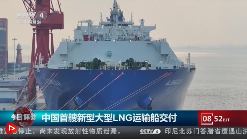 中國自主研制的首艘新型大型LNG液化天然氣運輸船11月25日在上海交付國外用戶。這型船采用了國際先進(jìn)的新型貨艙系統(tǒng),一次運輸量可滿足一個城市一個月的供給需求,填補了中國在該船型建造領(lǐng)域的空白。