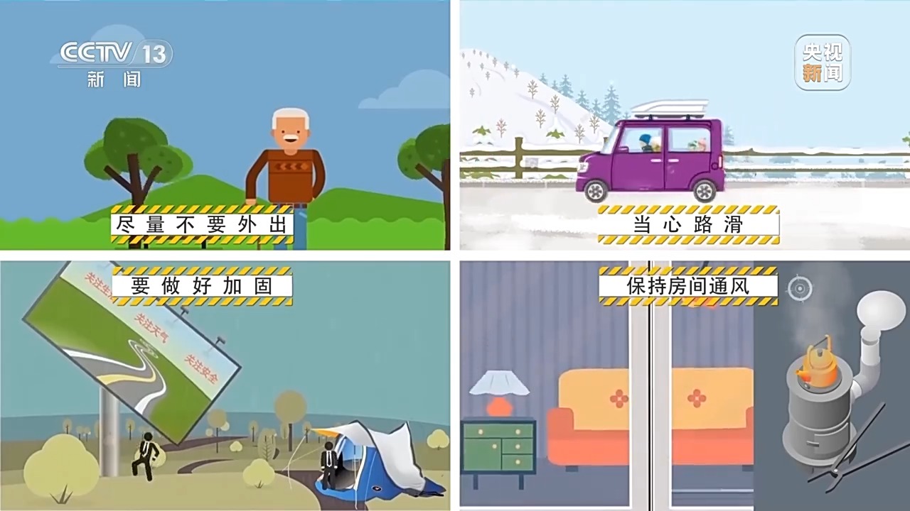 外出行走和開車要避免冰雪覆蓋的道路,當心路滑。