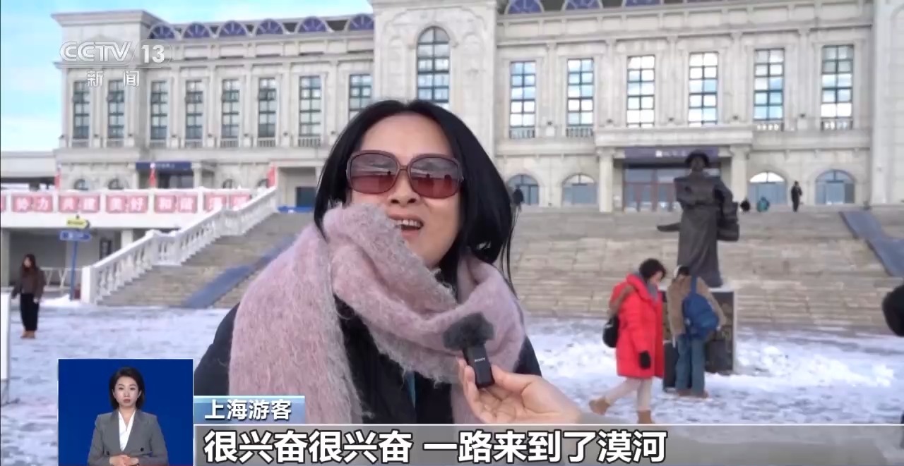 上海游客:坐上雪國(guó)列車,看著雪國(guó)的風(fēng)光。很興奮,一路來到漠河,也是我最期待,最向往的一個(gè)地方。