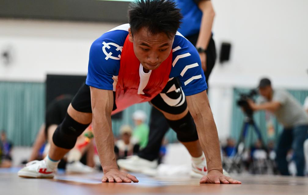 貴州代表團(tuán)的張仁信在27日獲得押加項(xiàng)目55公斤級(jí)一等獎(jiǎng)。平日里的他是一位礦山救護(hù)隊(duì)員。為了備賽減重,張仁信20多天沒(méi)有進(jìn)食碳水類食品,“我堅(jiān)持了好幾年,也算給自己一個(gè)交代”。