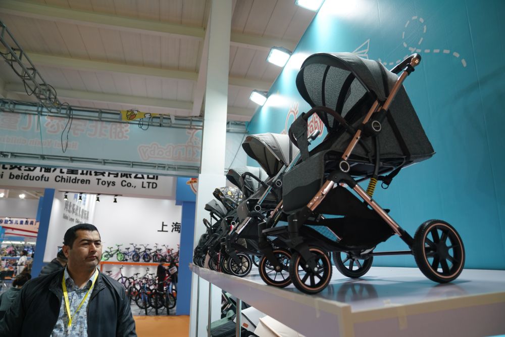 在河北省平鄉(xiāng)縣河古廟鎮(zhèn)一家童車生產(chǎn)企業(yè)展廳內(nèi)拍攝的童車產(chǎn)品。新華社記者 岳文婷 攝