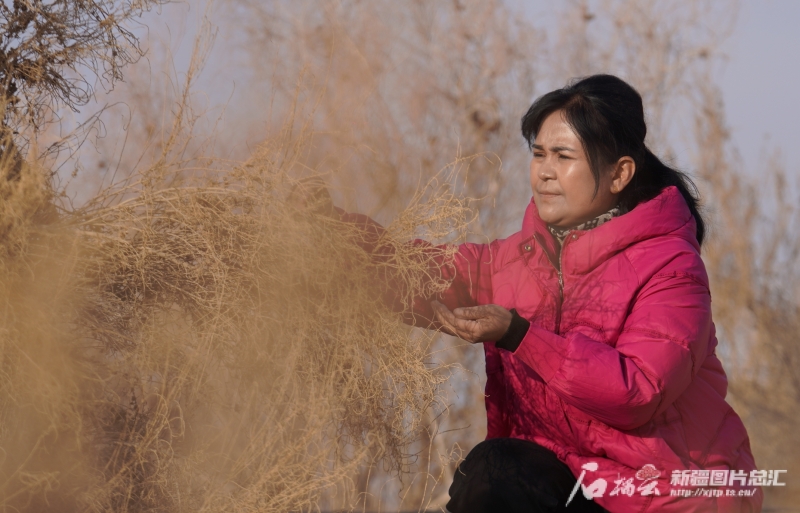 11月29日,在且末縣河?xùn)|治沙基地,帕提古麗·亞森在收集梭梭種子。蘇鑫 攝