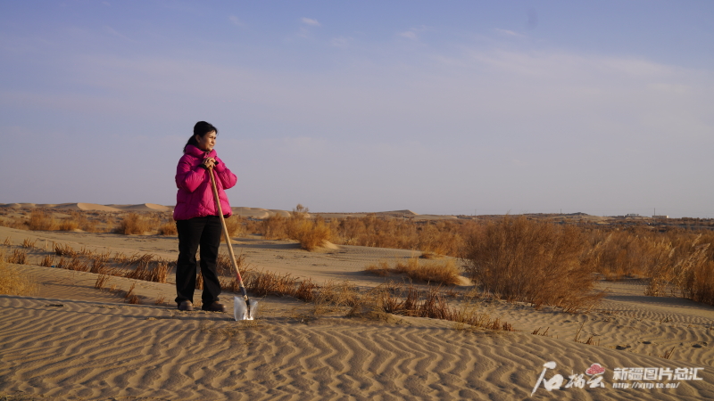 2005年,23歲的帕提古麗來到且末縣防風(fēng)治沙工作站,成為且末縣首批防沙治沙護(hù)林員。20年來,她不畏艱辛,挖坑栽樹,割蘆葦建草方格,把最美好的年華都奉獻(xiàn)給了這片黃沙之地。曾經(jīng)青春洋溢的少女,如今已步入中年,她用自己的青春換來沙漠中那一片片生機勃勃的綠色。