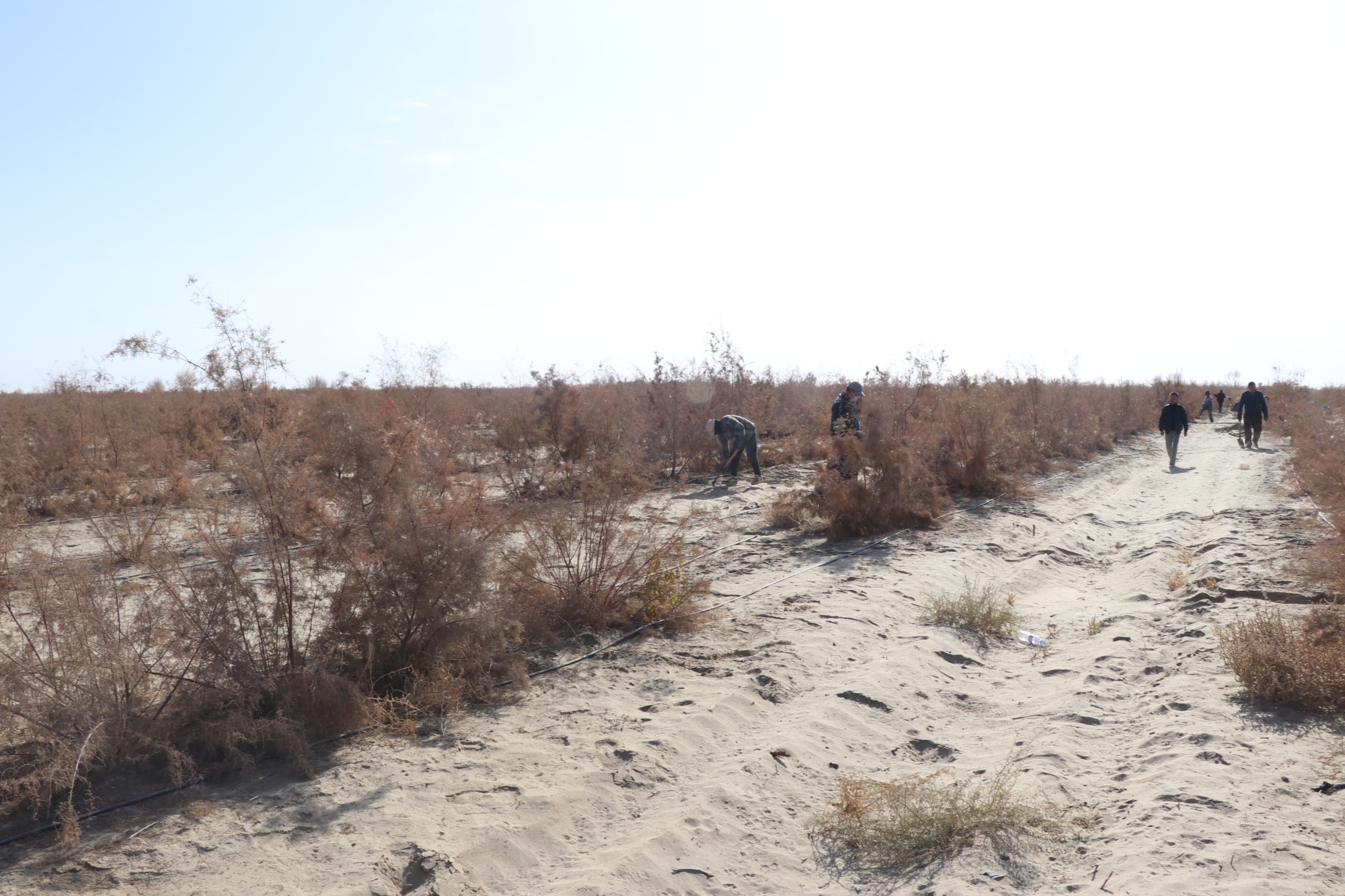 沙地平整,通過(guò)生物治沙改變當(dāng)?shù)厣鷳B(tài)環(huán)境 (墨玉縣融媒體中心供圖)