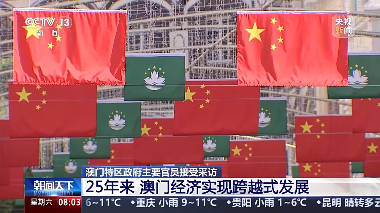 澳門回歸祖國(guó)25年來(lái),向世界展示了具有澳門特色“一國(guó)兩制”的成功實(shí)踐。澳門特區(qū)政府主要官員近日接受記者采訪時(shí)表示,25年來(lái),澳門經(jīng)濟(jì)快速增長(zhǎng)、民生持續(xù)改善,在融入國(guó)家發(fā)展大局的進(jìn)程中,澳門也迎來(lái)愈加廣闊的發(fā)展天地。
